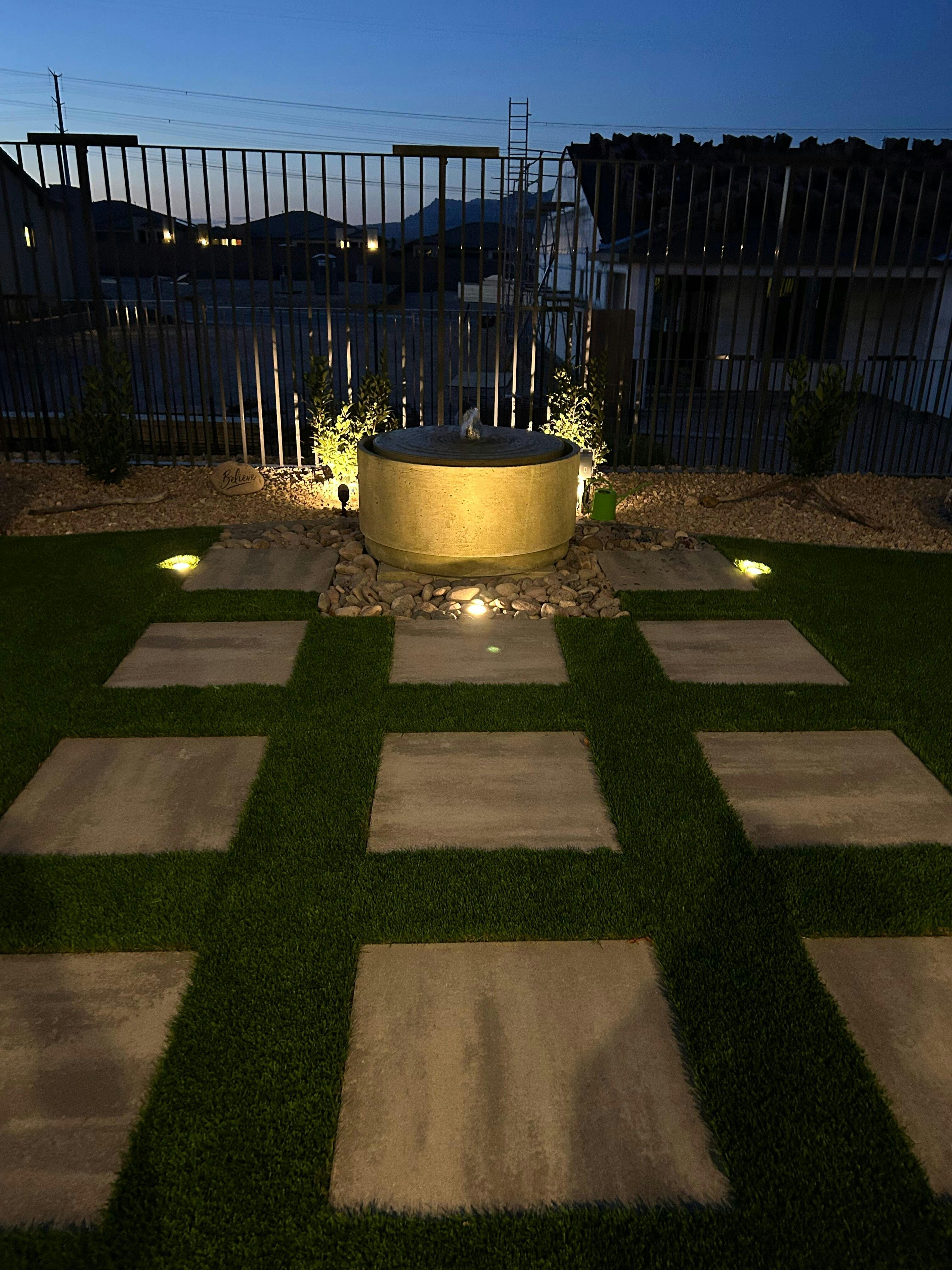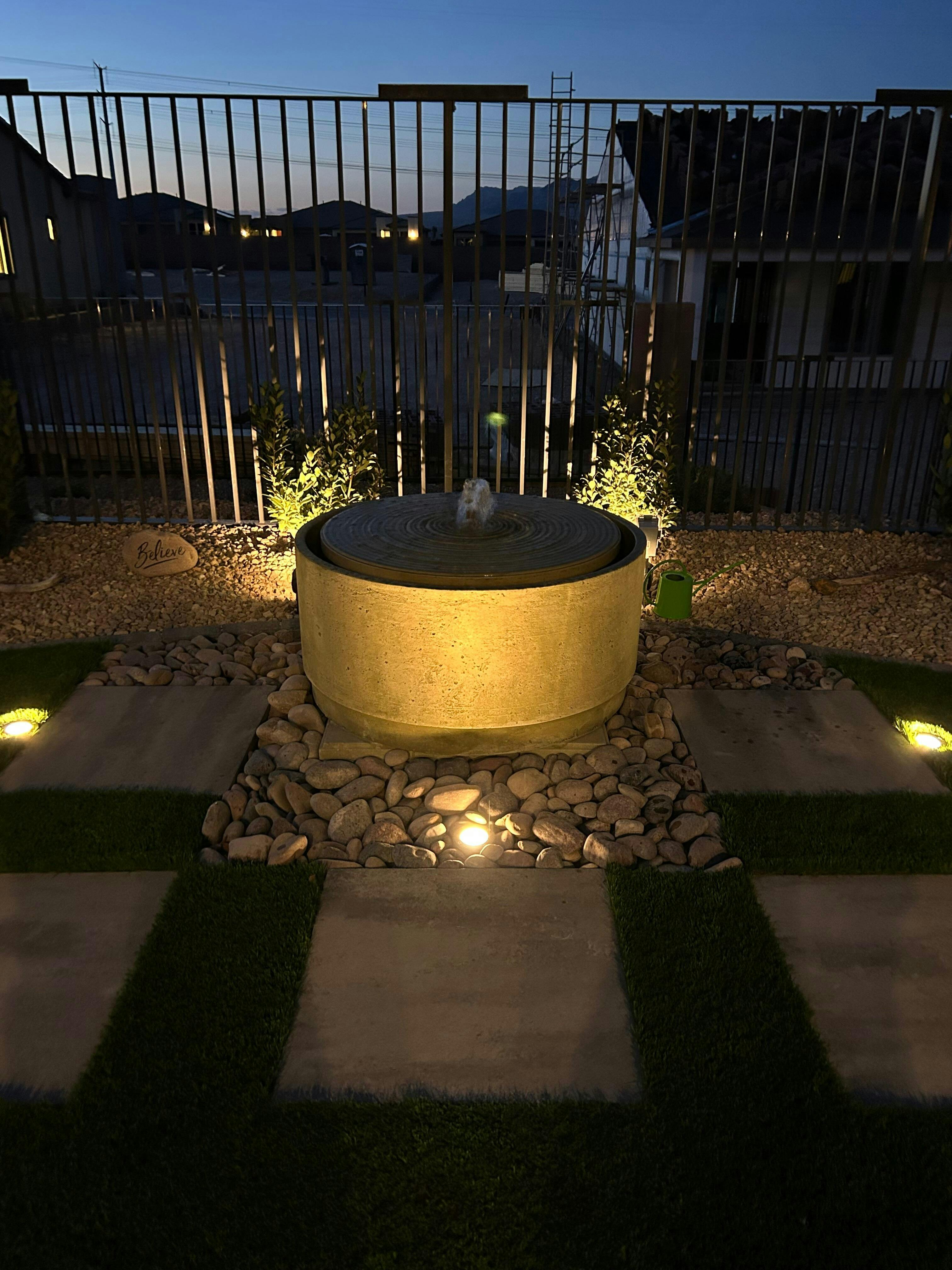 Took awhile to get it made and installed, but it was worth the wait. Such a stunning fountain. We have uploaded two photos of the fountain in our backyard; one at night and one during the day.