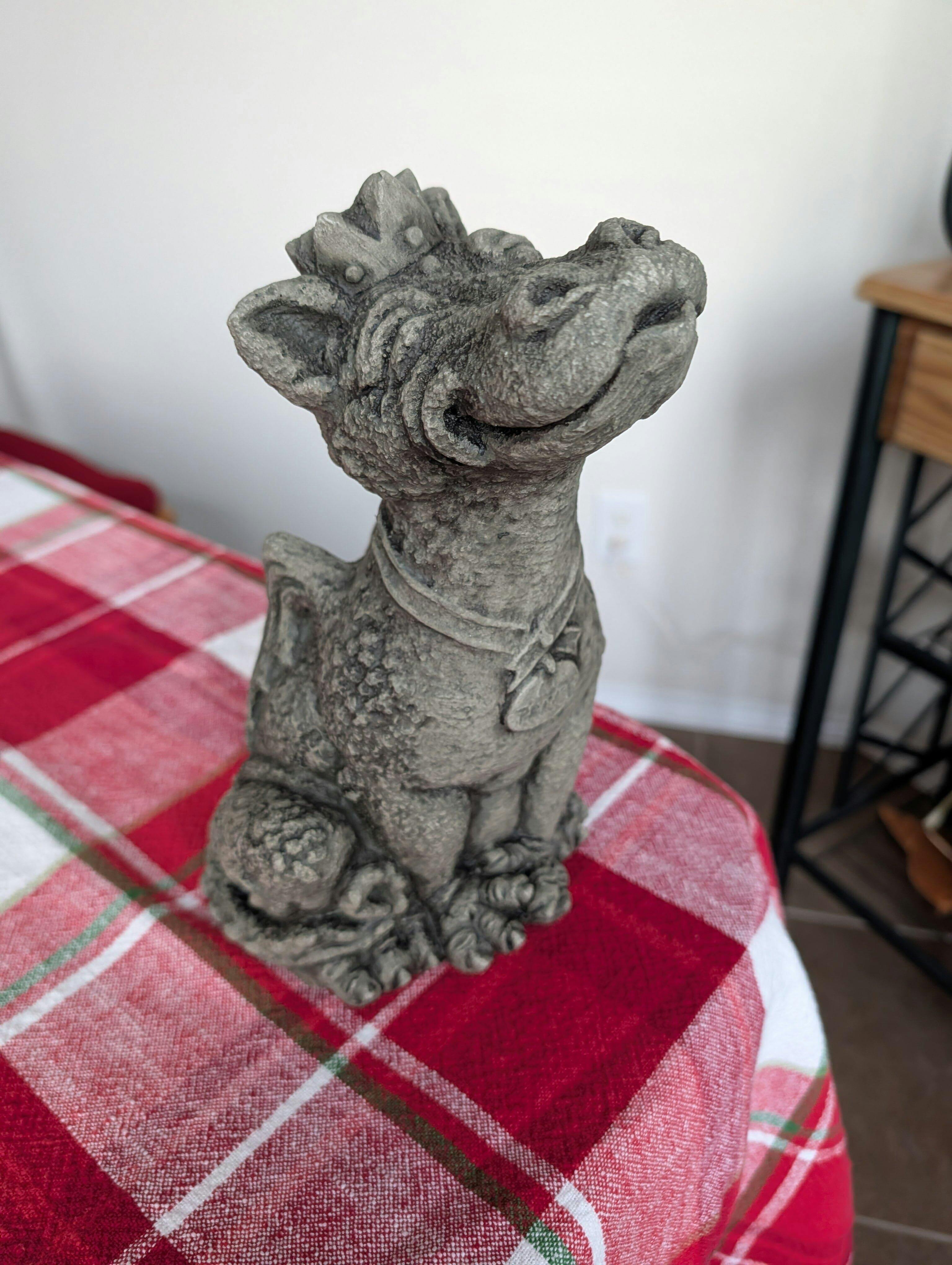 Purchased this Prince dragon statue as a gift in the Classic Sterling Woods Stone stain color. The detail of the scales, face, and other areas is remarkable. Hefty weight, definitely sturdy enough for displaying just about anywhere. Highly recommend!!