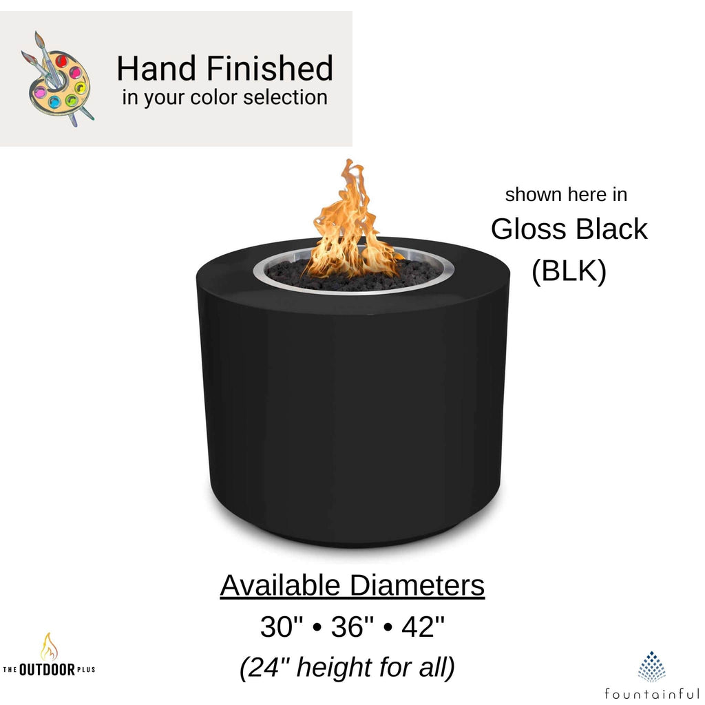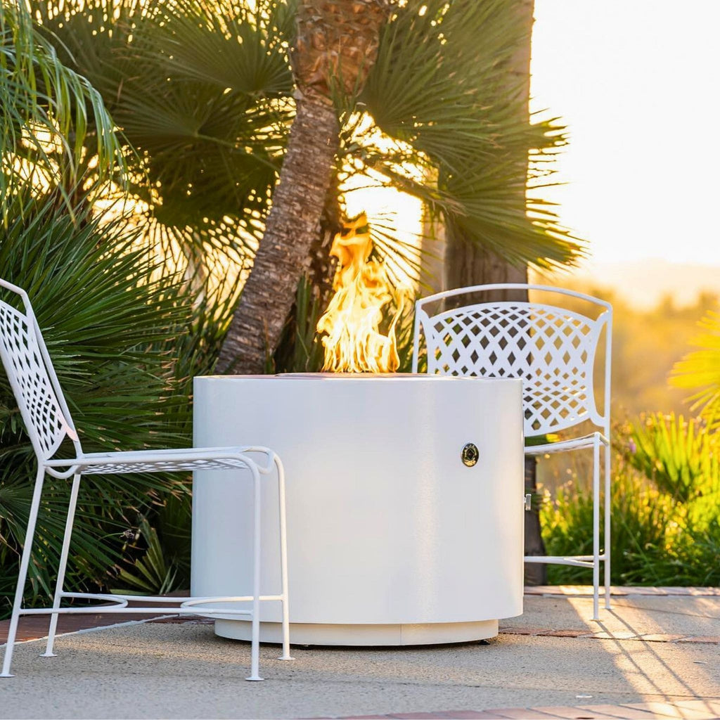 The Beverly Fire Pit by The Outdoor Plus is designed with luxury in mind with a sleek edge perfect for enjoying drinks or hors d'oeuvres. The versatile round design turns any small space into an intimate, chic setting. Select from a diverse palette of lovely powder coat colors. Includes lava chunks.