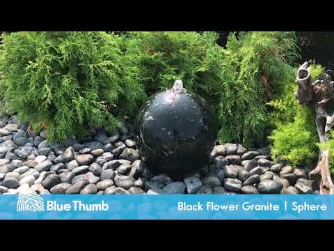 Black Flower Granite Sphere Fountain - Complete Kit - Blue Thumb