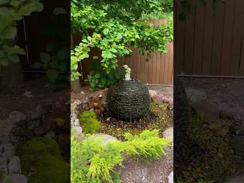 Water bubbles up from the center of the boulder and cascades down all of the surface. The gentle-to-moderate sounds of the Faux Stacked Slate Sphere Fountain promote relaxation and help create a calming environment. This fountain darkens when wet and attracts wonderful mosses.