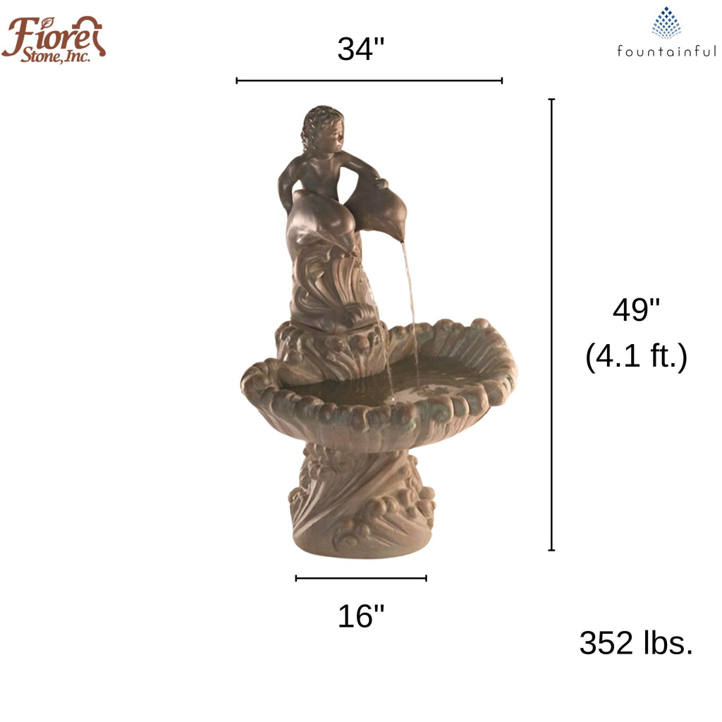 Enjoy the charm and craftsmanship of this 352-pound cast stone concrete fountain. Includes pump.