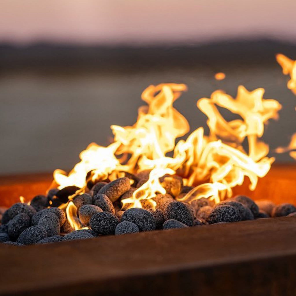 Named for the lovely resort city in Baja California, the Cabo Fire Pit by The Outdoor Plus is a striking patio statement piece and features a squared design built from one of three premium, commercial-grade materials. Select from Hammered Copper, Stainless Steel, or COR-TEN® Steel. Includes lava chunks.