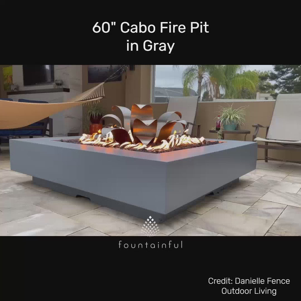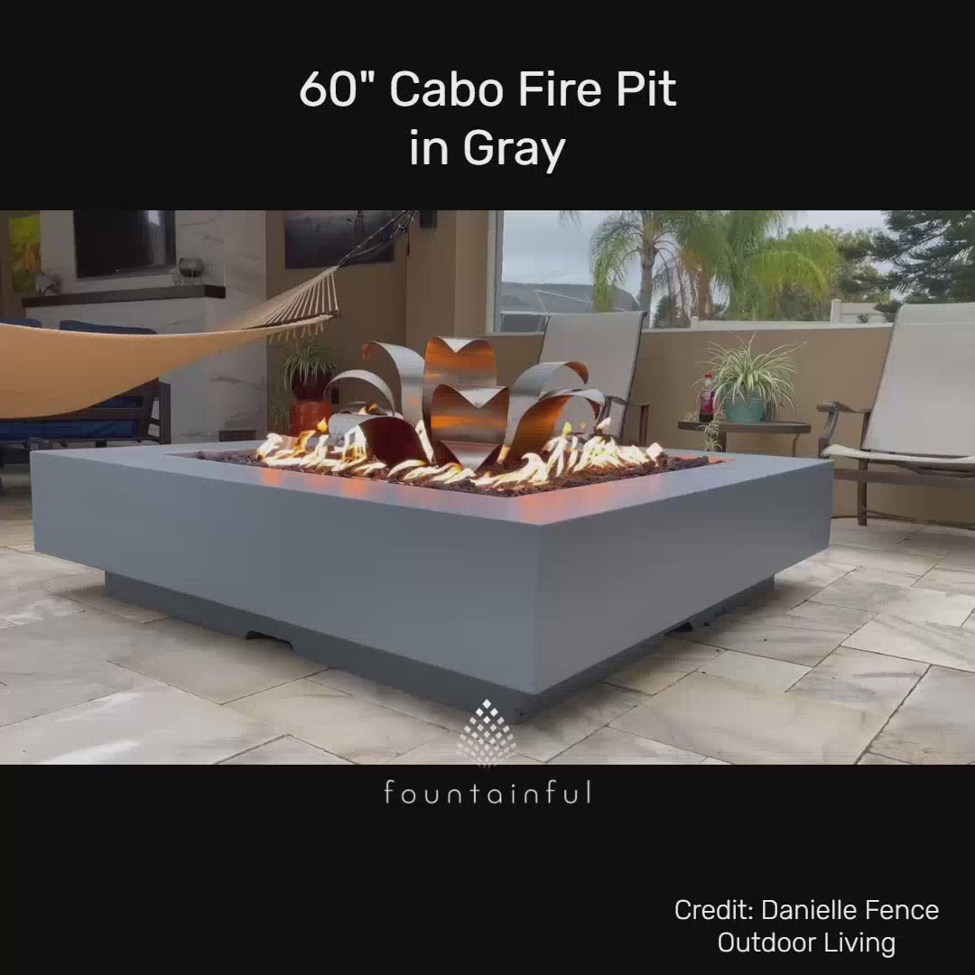 Named for the picturesque resort city in Baja California, the Cabo Fire Pit by The Outdoor Plus is a striking patio statement piece and features a squared design built by hand from commercial-grade steel. The steel is then powder coated and finished in your color selection. Includes lava chunks.