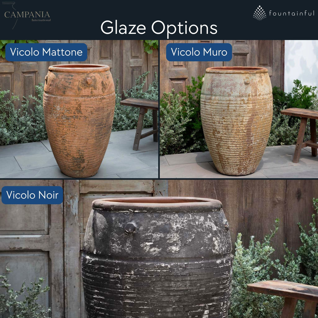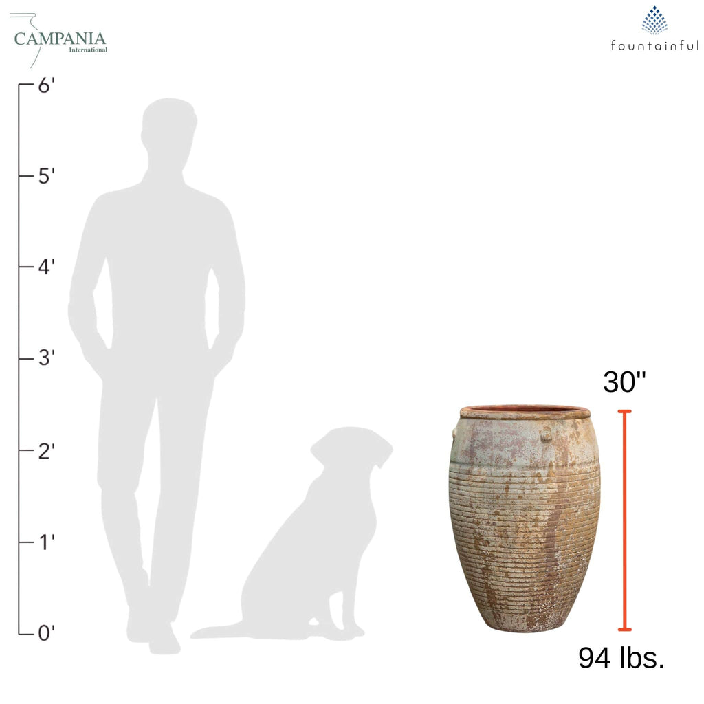 Named for the ancient port city on Sicily's east coast, the Catania Jar Planter by Campania utilizes an antique glazed technique that creates a look of weathered beauty. Enjoy the old world charm and craftsmanship of this 94-pound terra cotta planter. Display on your patio, porch, garden, and more!