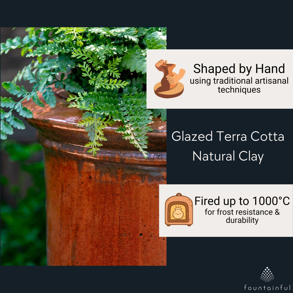 Each Vaucluse Urn Planter is hand thrown from natural clay using traditional artisanal techniques and high-fired at 990° to 1,000° centigrade to aid in frost resistance and durability (see tips in Resources & Care/Warranty section below).