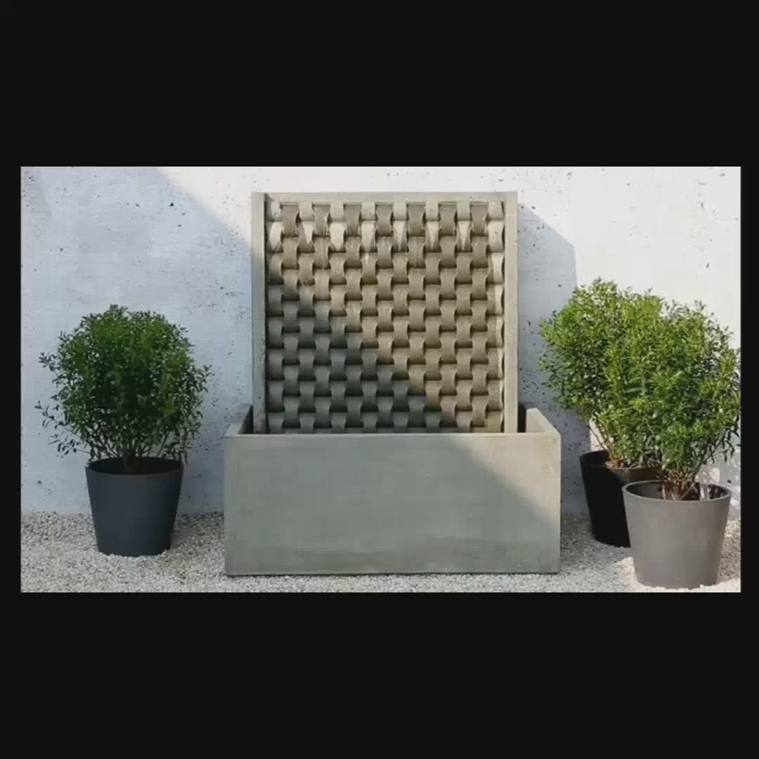 The M Weave Large Wall Fountain by Campania features a "woven" backsplash as its primary focal point, over which the water cascades down into the pool. With clean angles and beautiful visual depth when observed from the front, this fountain is an ideal accent for sprucing up a fence or wall.