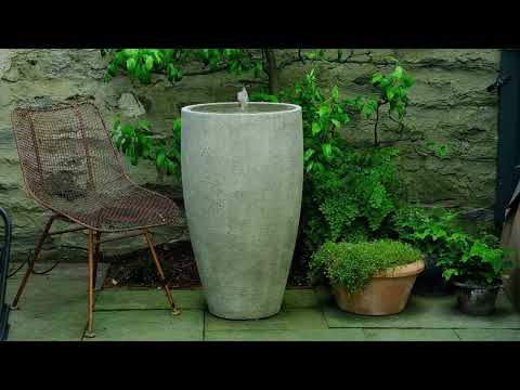 The Manzanita Urn Fountain by Campania features a tapered urn design and a centrally mounted copper water spout. pedestal. Water trickles into the urn chamber on all sides, letting the sight and sounds of this fountain be enjoyed from any angle.
