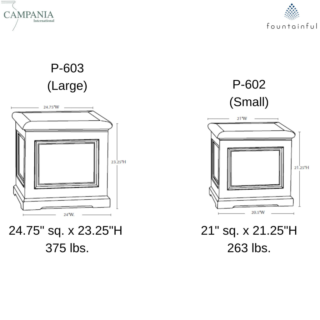 Each Orleans Box Planter is individually hand built of high-density cast stone concrete and rated for both indoor and outdoor use. Choose any color stain from the Campania palette to compliment your decorative theme.