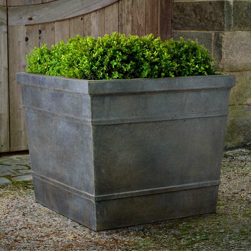 The Marin XL Box Planter by Campania features a classic tapered box design with two accent lines around its sides. Enjoy the charm and craftsmanship of this 810-pound concrete planter. Display on your patio, porch, garden, and more!