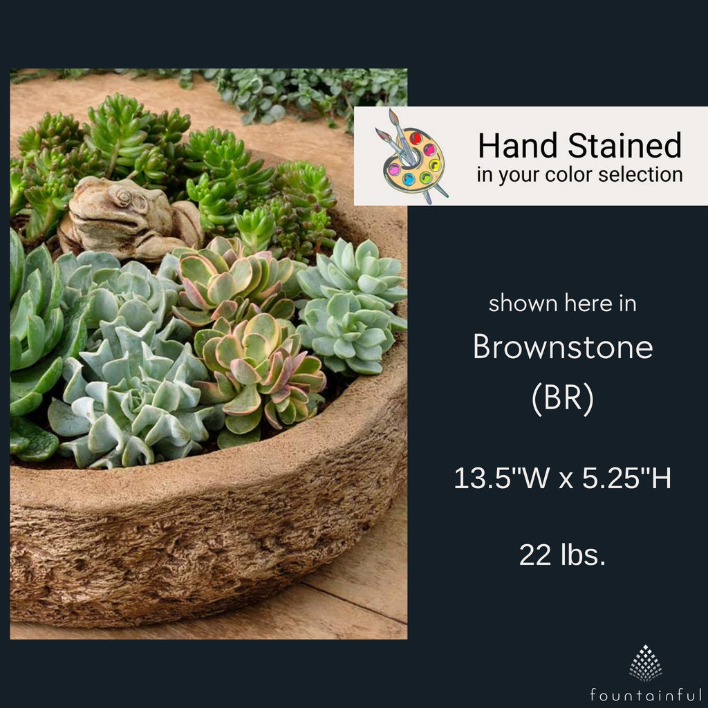 Each Forest Frog Planter is individually hand built of high-density cast stone concrete and rated for both indoor and outdoor use. Choose any color stain from the Campania palette to compliment your decorative theme.