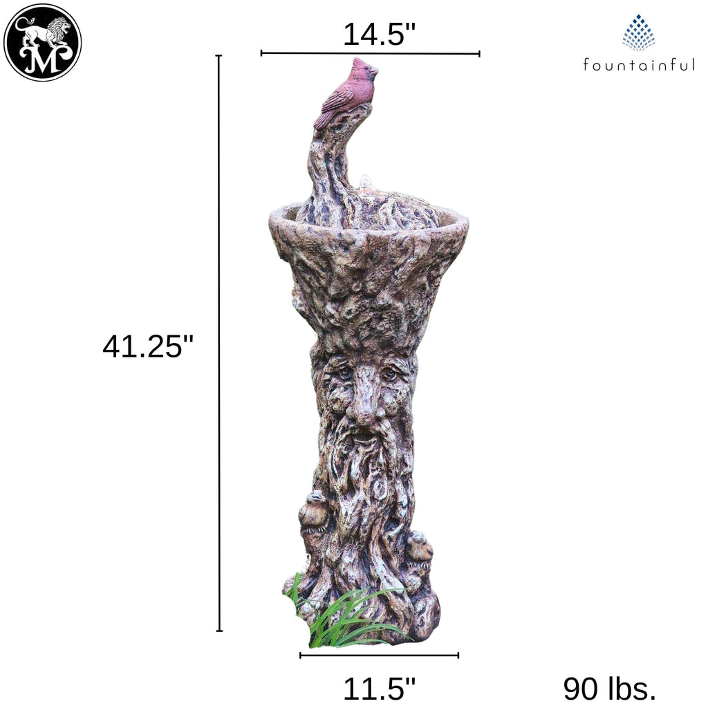 The Cardinal Concrete Fountainette with Tree Man by Massarelli’s Fountains features one of the most intricately sculpted fountainette pedestals. The Tree Man icon and his two bird companions form the beautiful pedestal. On top is the water bowl and an equally detailed sculpted cardinal, perched above the lighted water spout.