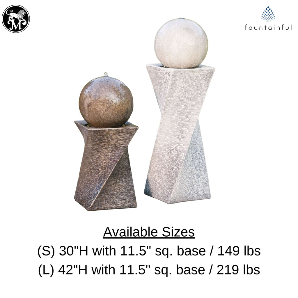 The Contemporary Diagonal Water Fountain from Massarelli's Fountains is a work in geometric contrasts. A sphere sits atop a rectangular pedestal, which is "twisted" to give it a look of motion, further enhanced by the bubbling water atop the sphere.