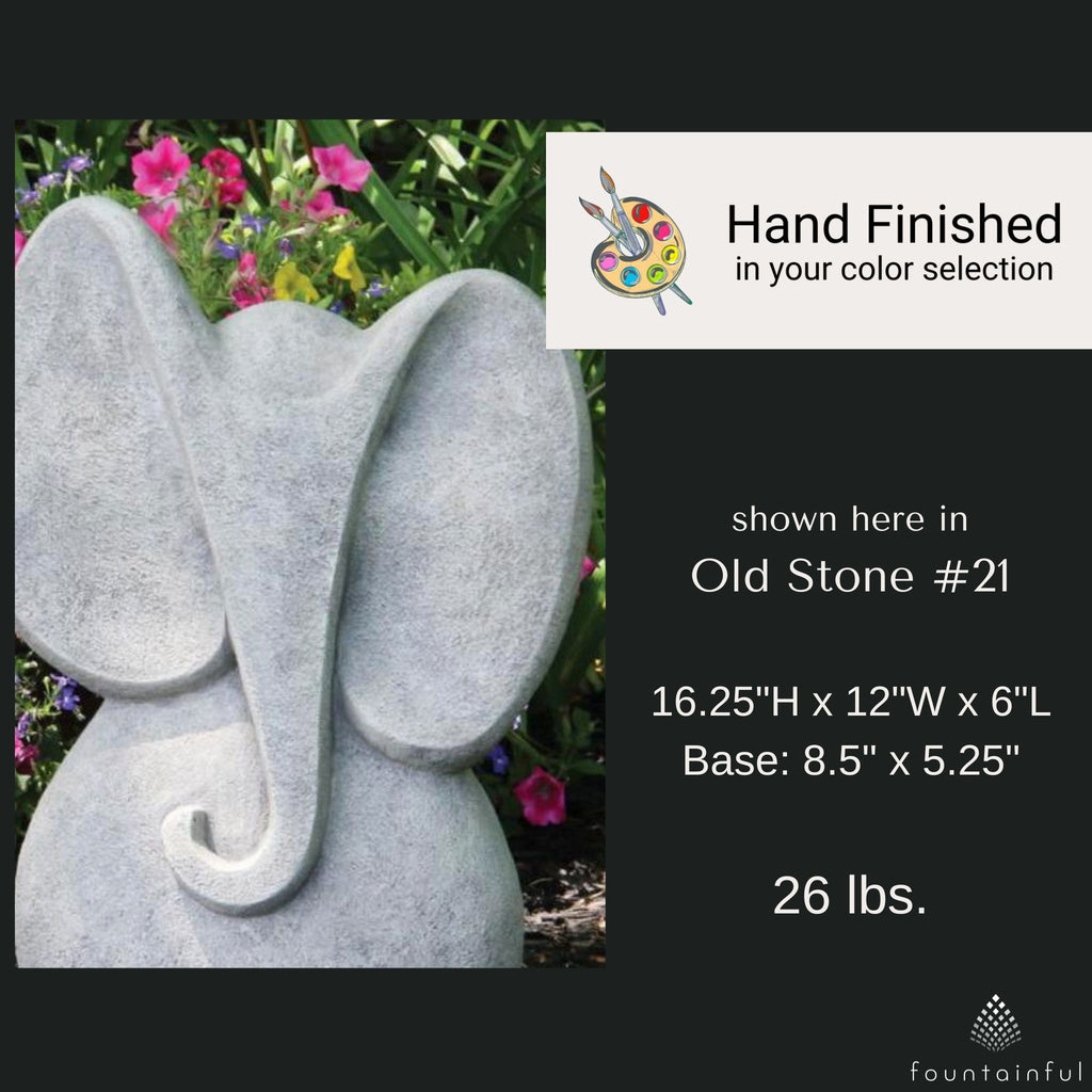 Each Contemporary Elephant Statue is individually hand built of cast stone concrete and rated for both indoor and outdoor use. Choose from the full range of Massarelli's color finishes to compliment your decorative theme.