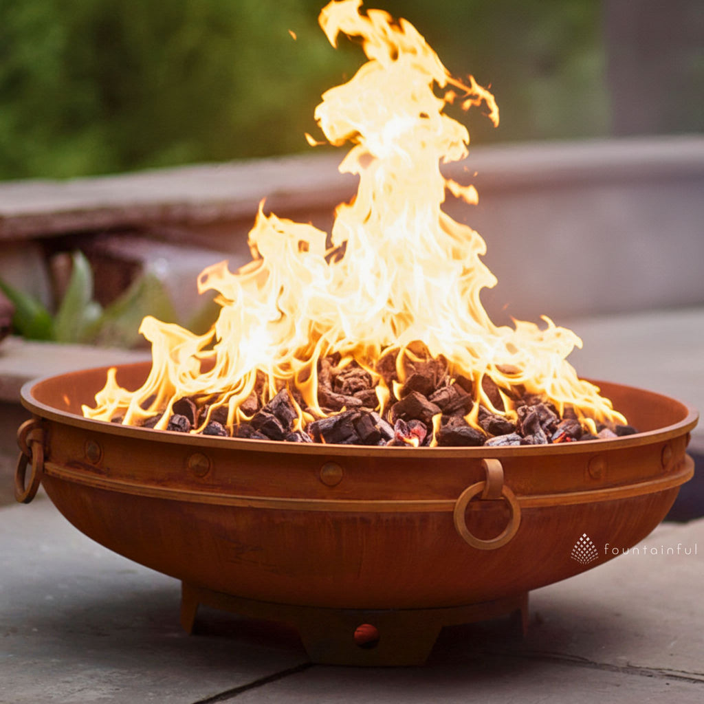 Enjoy the rustic beauty and durability of this 120-pound carbon steel fire pit. Always use a gas installation professional when connecting a Natural Gas line to your fire pit.