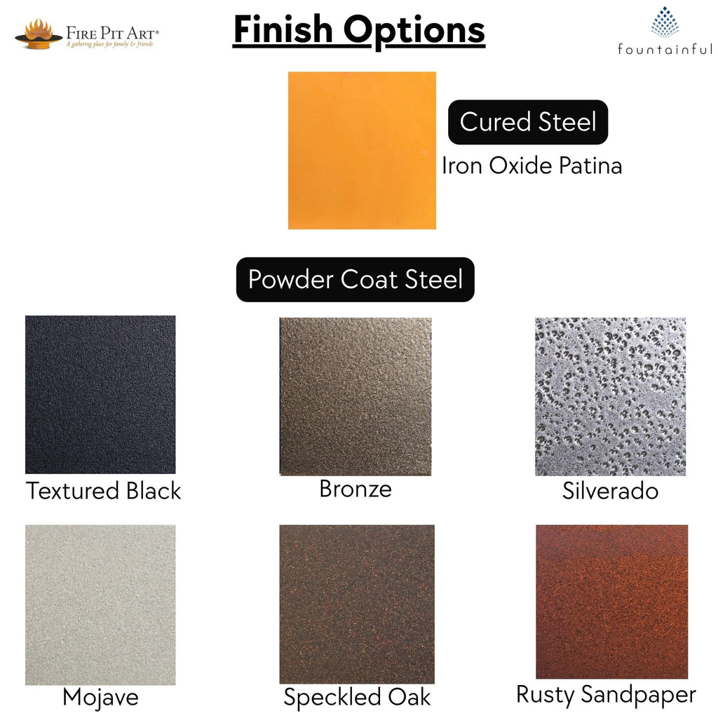 Before a fire pit finished in Iron Oxide Patina naturally matures into a dark mahogany after the first fire, be aware that some of the finish can rub off onto the surface on which the pit is placed.