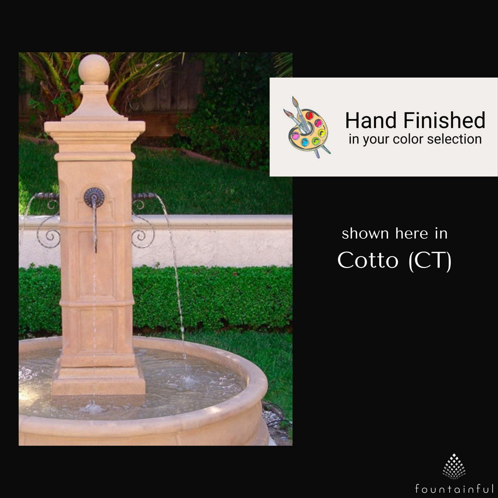 - A concrete fountain must be placed on a level and firm surface and not raised off the ground more than the inch or two that would occur if using a foundation.