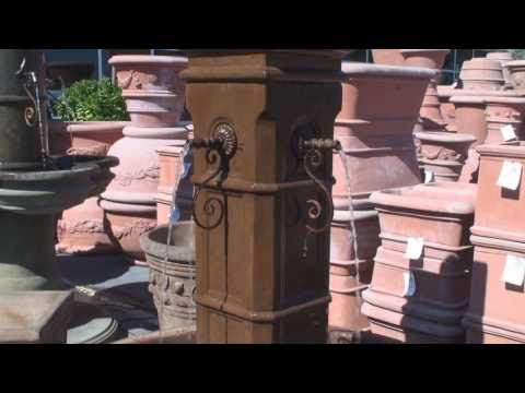 • Giannini wall fountains have a steel bar along the back, near the top. The fountain should be secured to a wall with galvanized wire, chain, etc.