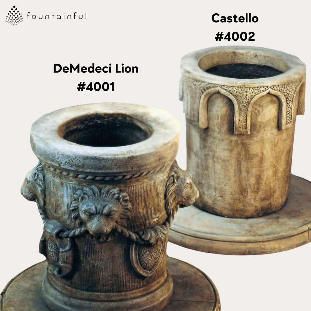 Italian Concrete Wishing Wells - De Medeci Lion and Castello - Giannini