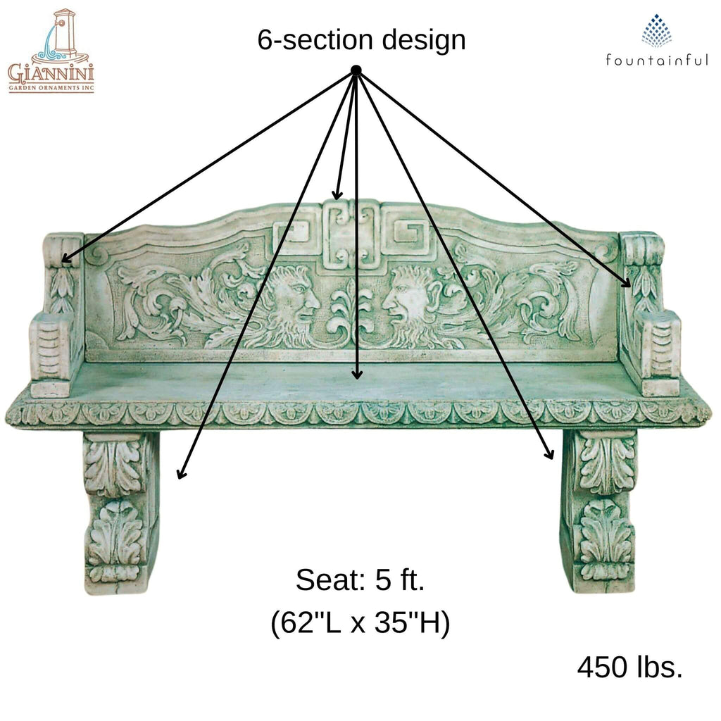 Green Man Concrete Garden Bench - Giannini #522