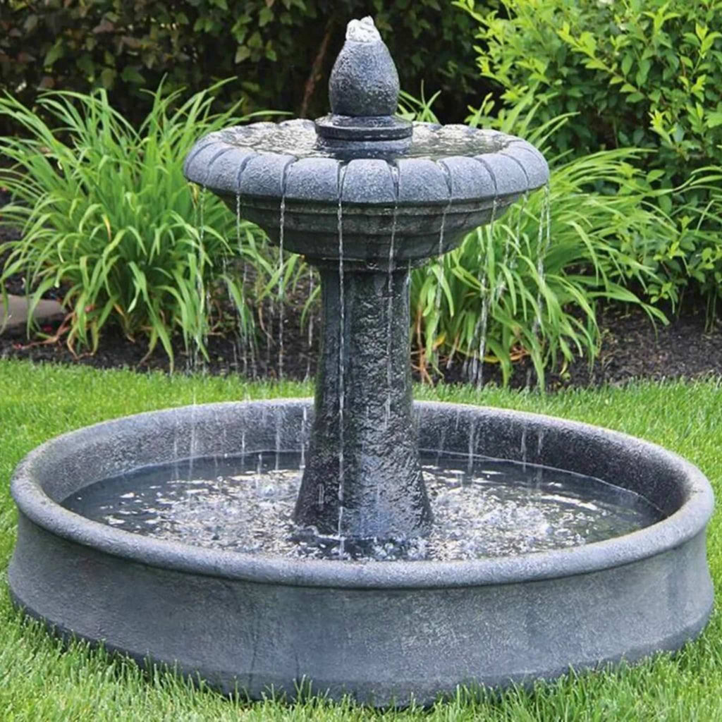 Water bubbles up from the conical finial and cascades into the pool basin via concentrated streams. The moderate ambient sounds of the Hampton Fountain with 46" Pool promote relaxation and may help mask certain unwanted noise.