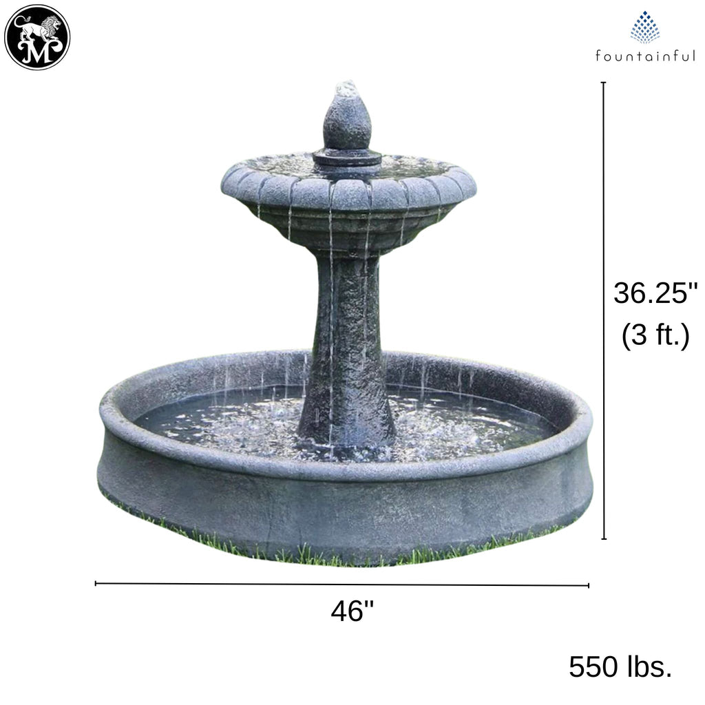 Enjoy the charm and craftsmanship of this 550-pound cast stone concrete outdoor fountain and pool. Includes pump.