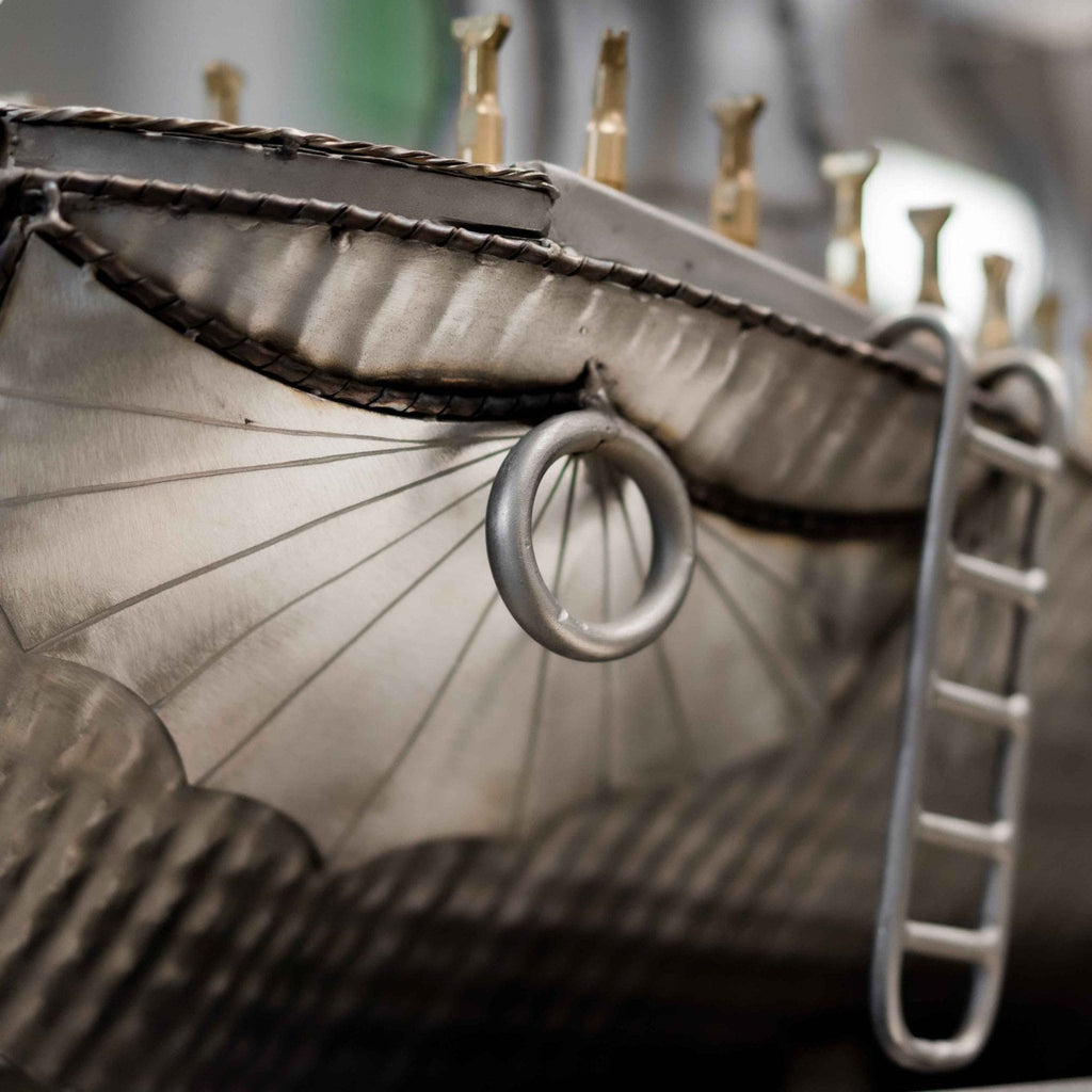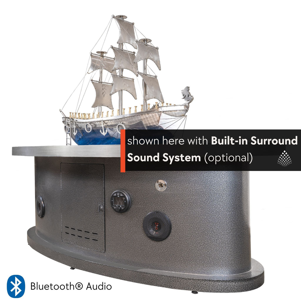 The La Pinta Fire Table by Outdoor Plus is the pinnacle of American metal craftsmanship. Featuring a 3-foot stainless steel ship as its centerpiece, this fire feature creates captivating sights from every direction. Includes lava chunks and complete burner kits.