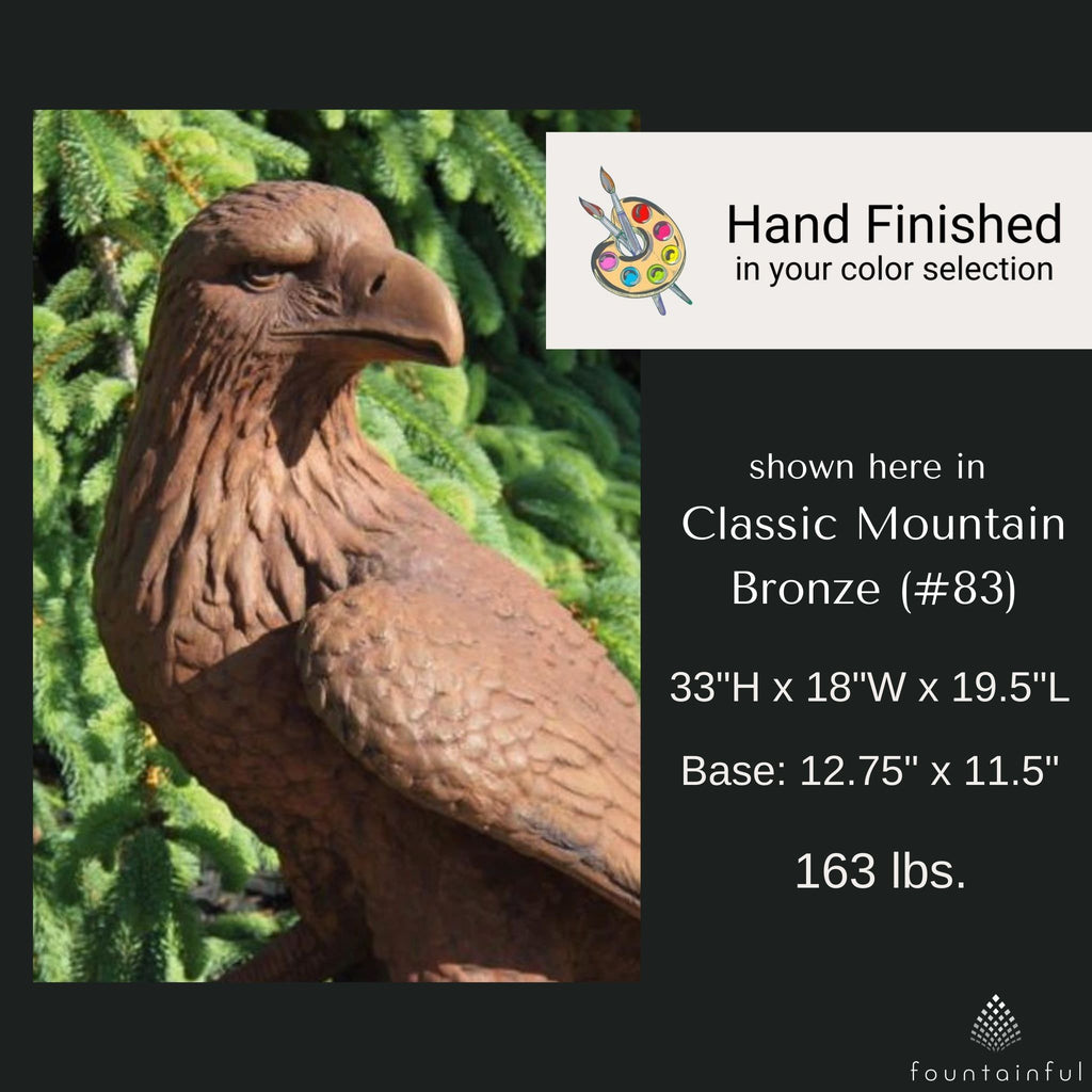 Each Large Eagle Statue is individually hand built of cast stone concrete and rated for both indoor and outdoor use. Choose from the full range of Massarelli's color finishes to compliment your decorative theme.