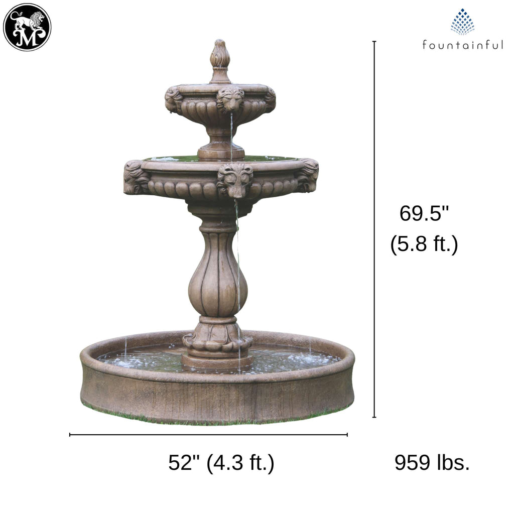 Enjoy the classical charm and craftsmanship of this 959-pound cast stone concrete fountain. Includes pump.