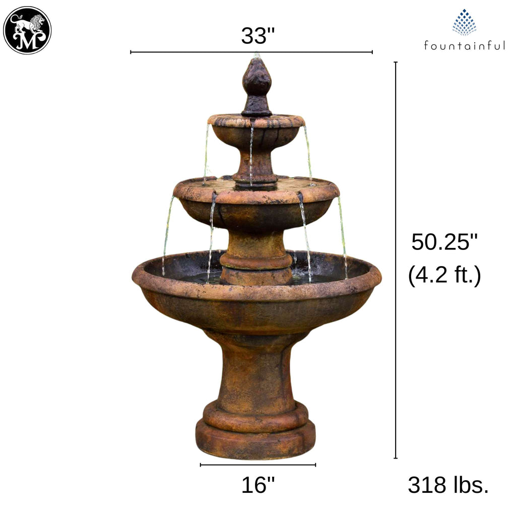 Enjoy the rustic charm and durability of this 318 pound cast stone concrete outdoor fountain. Includes pump.