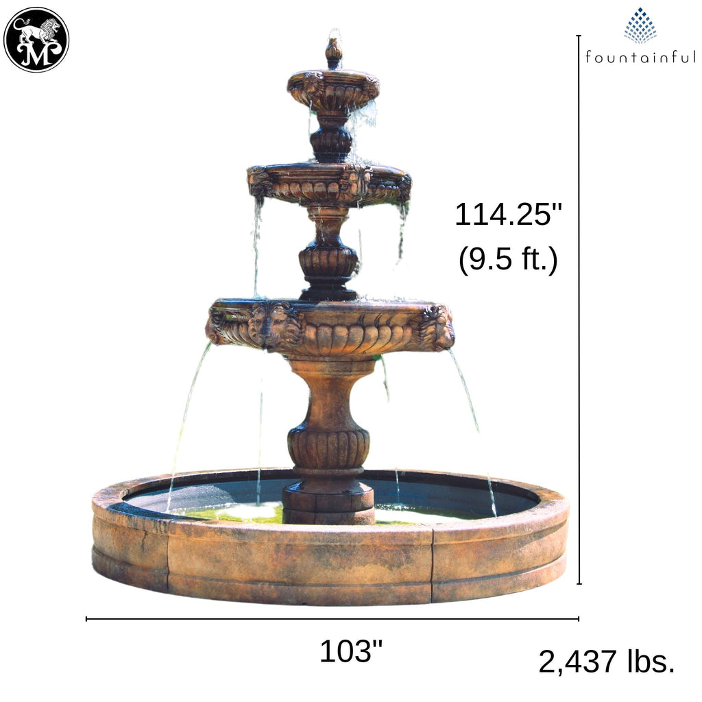Enjoy the classic elegance and durability of this 2,437 pound cast stone concrete outdoor fountain. Includes pump.