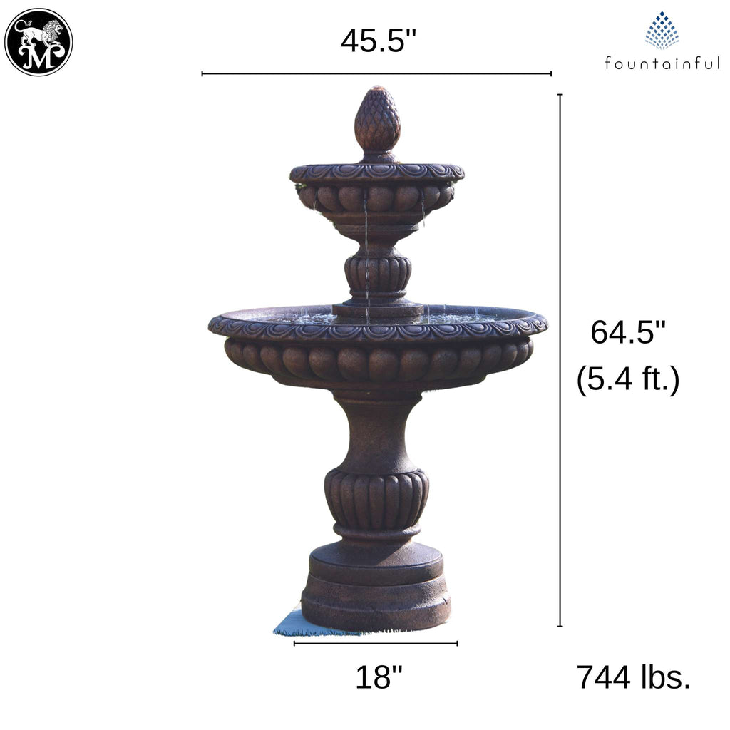 The Isabella 2-Tier Fountain by Massarelli's Fountains features intricate scrollwork and a masterfully sculpted pinecone finial at its crown. Water flows from the top tier on all sides, creating beautiful focal points from any angle.