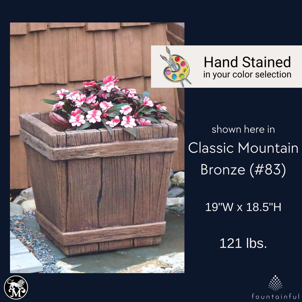 The Castaway Box Planter by Massarelli's features maseterful sculpting that gives the box the appearance of a weathered, wooden crate. Enjoy the charm and craftsmanship of this 121-pound concrete planter. Display on your patio, porch, garden, and more!