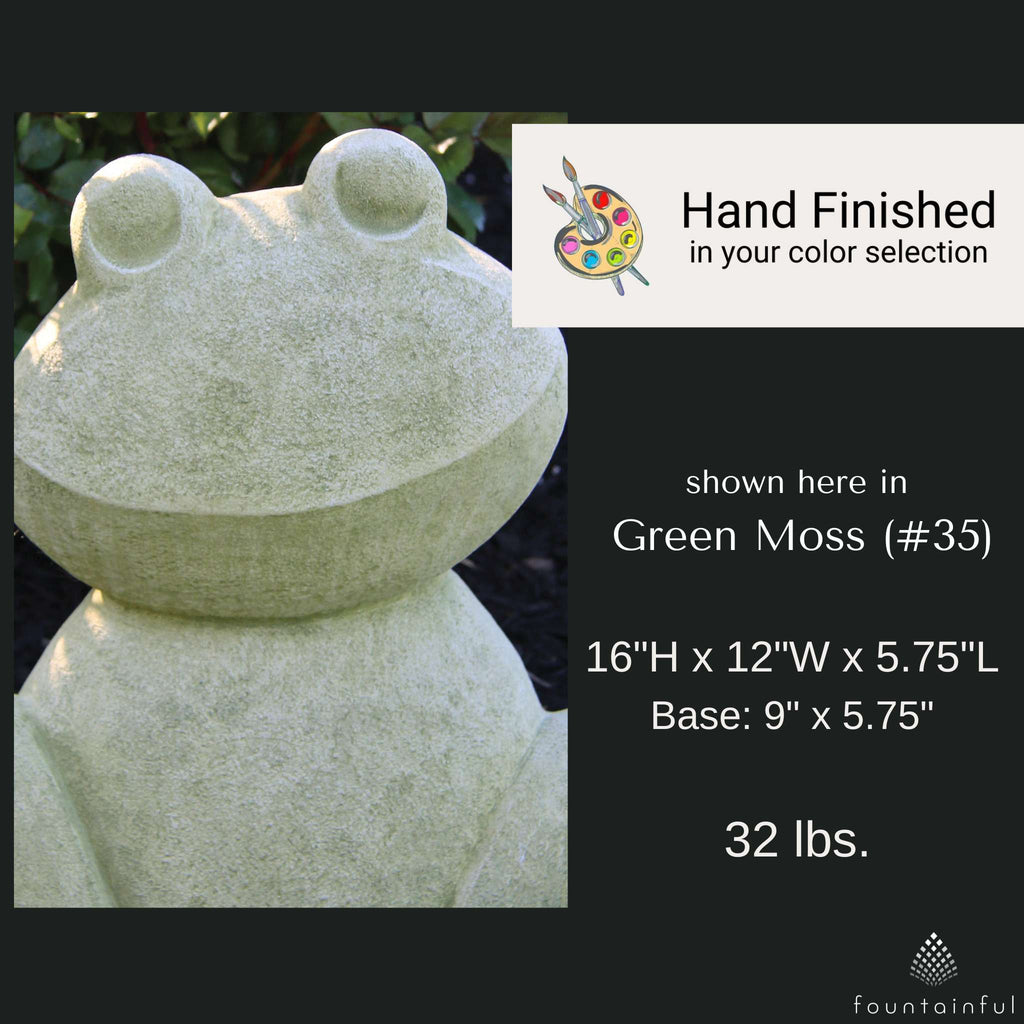 Each Contemporary Frog Statue is individually hand built of cast stone concrete and rated for both indoor and outdoor use. Choose from the full range of Massarelli's color finishes to compliment your decorative theme.