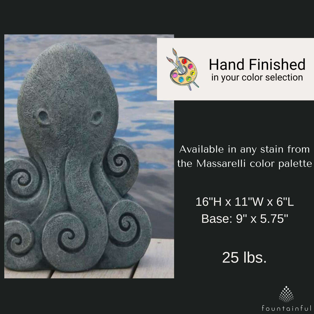 Each Contemporary Octopus Statue is individually hand built of cast stone concrete and rated for both indoor and outdoor use. Choose from the full range of Massarelli's color finishes to compliment your decorative theme.