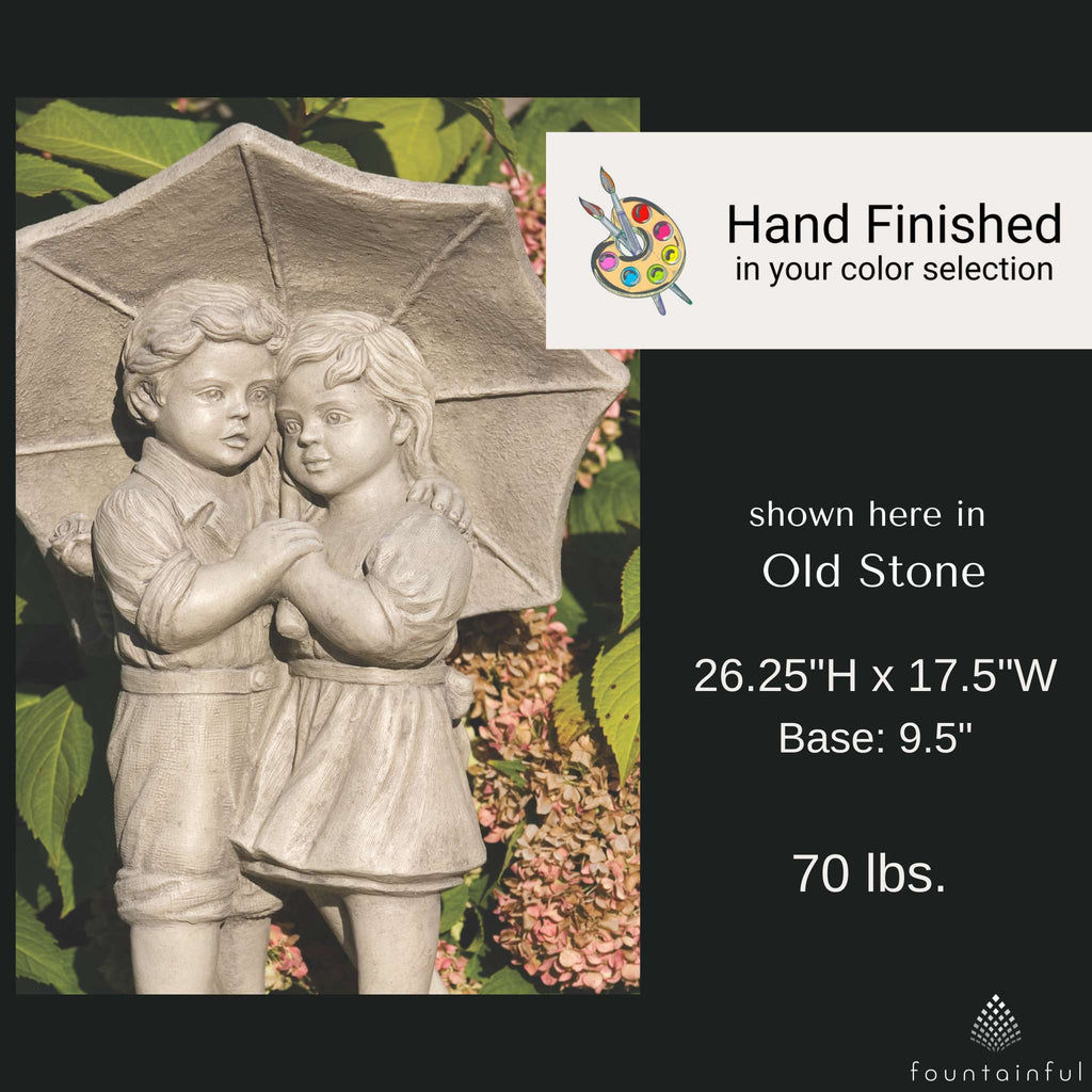 The Rainy Day Children Statue by Massarelli's depicts a boy and girl close together underneath an umbrella. Place statuary around the garden to display your personal style!