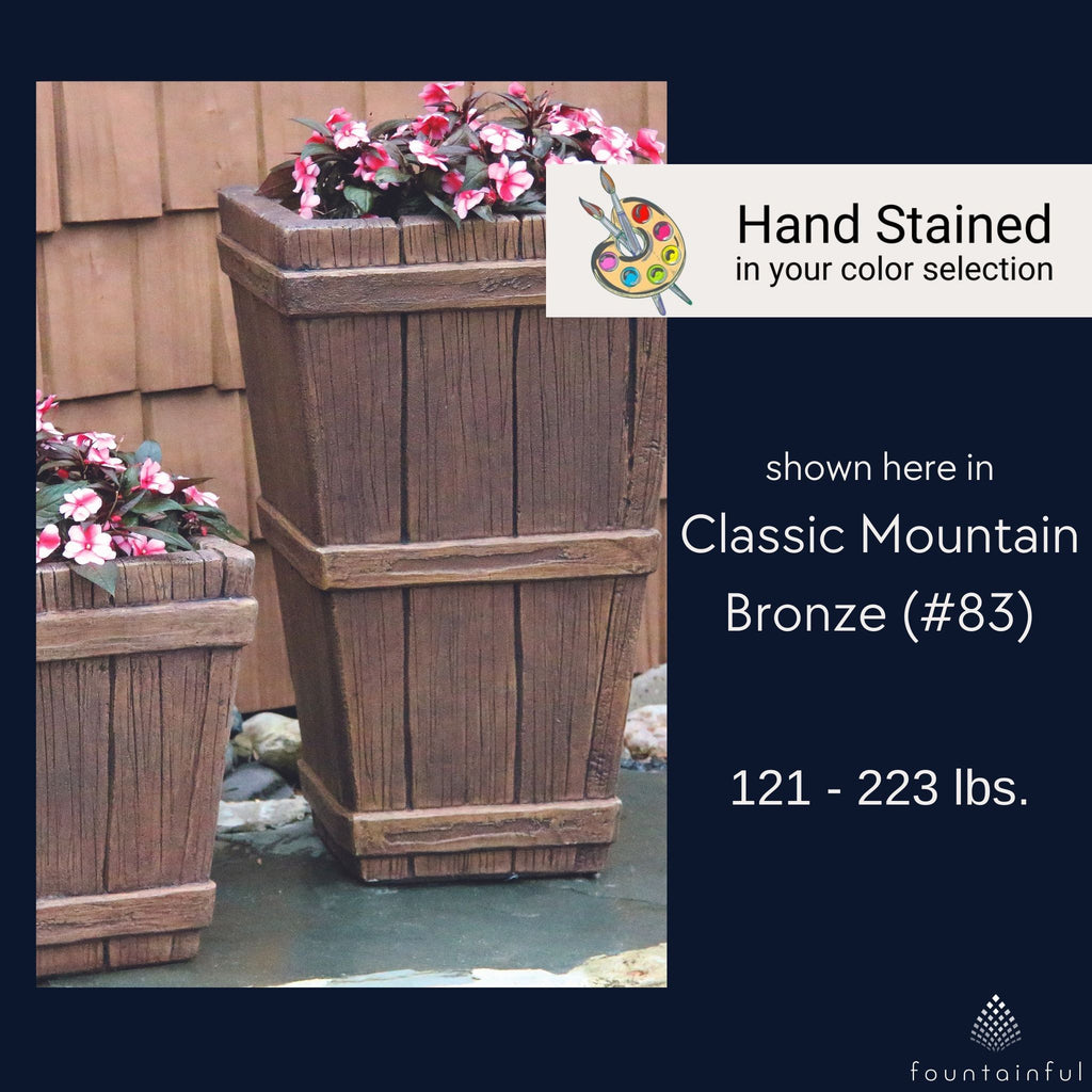 The Castaway Box Planters by Massarelli are masterfully sculpted to resemble a weathered, wooden crate. Enjoy the charm and craftsmanship of these 121 and 223-pound concrete planters. Display on your patio, porch, garden, and more!