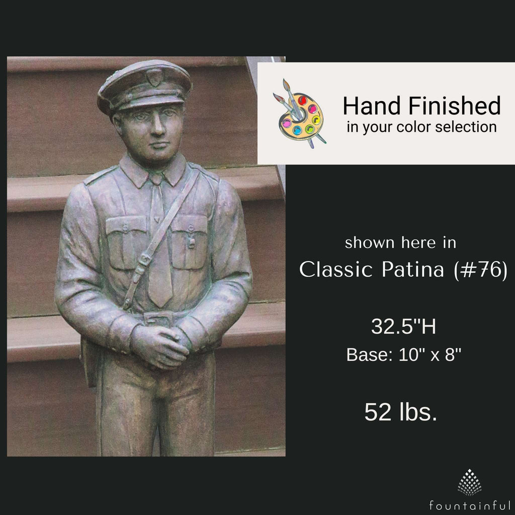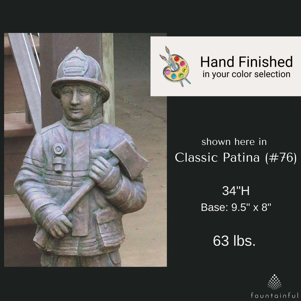 Each First Responder Statue is individually hand built from concrete and rated for both indoor and outdoor use. Choose from the full range of Massarelli's color finishes to compliment your decorative theme.
