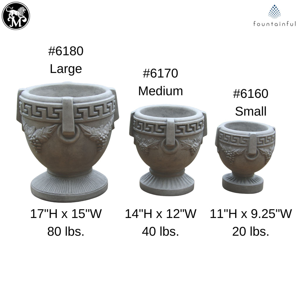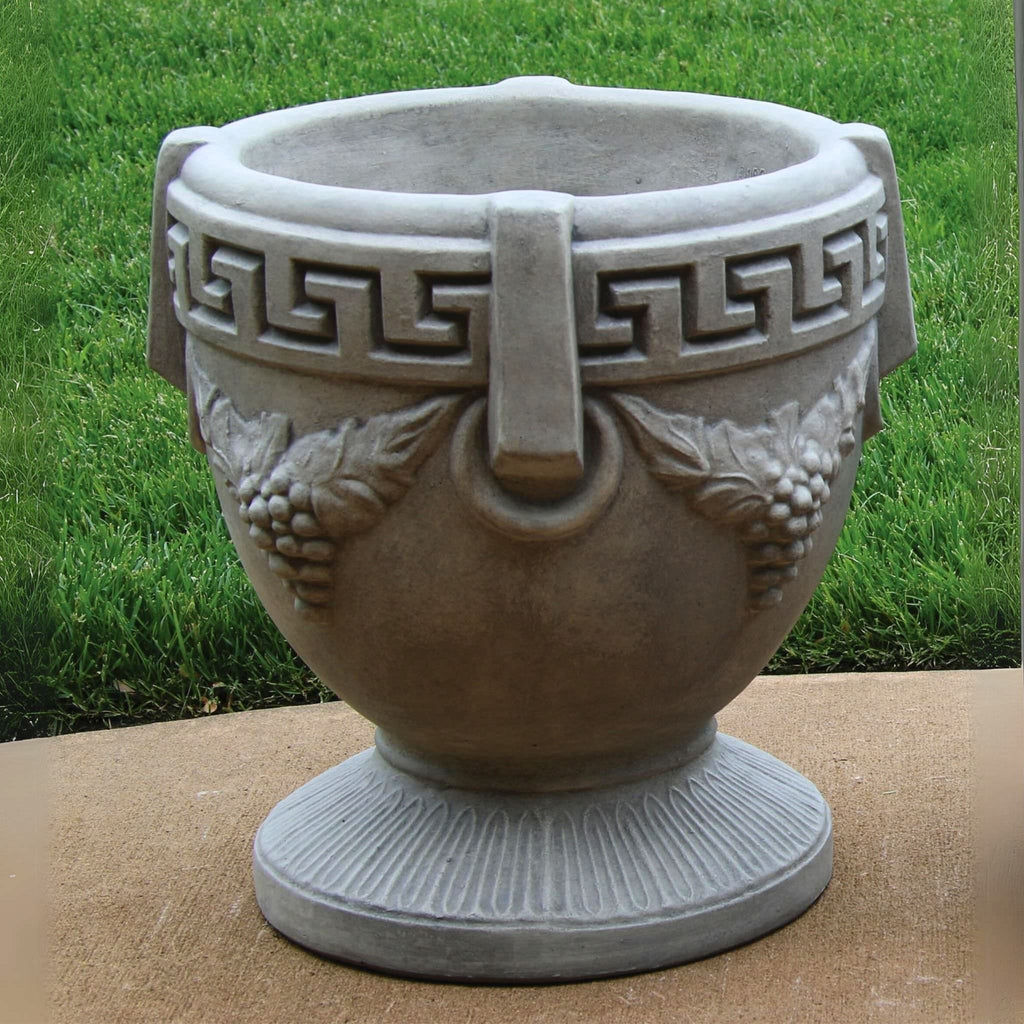 The Grecian Urn Planters by Massarelli feature sculpted grape clusters and scrollwork around its entire surface. Enjoy the old world charm and craftsmanship of this 20 to 80-pound concrete planter, depending on the size selected. Display on your patio, porch, garden, tabletop, windowsill, and more!