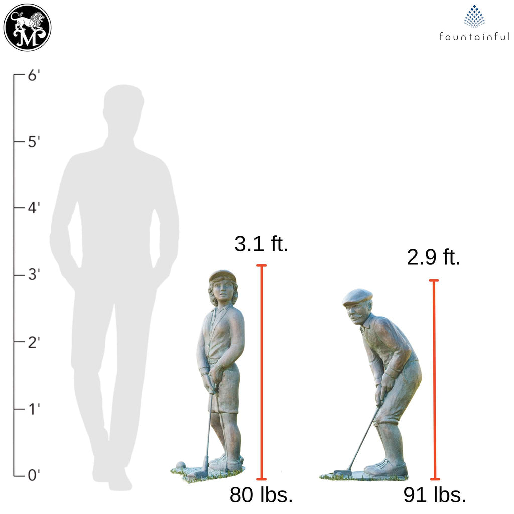 Nostalgic Golfer Man & Woman Concrete Garden Statues - Massarellis