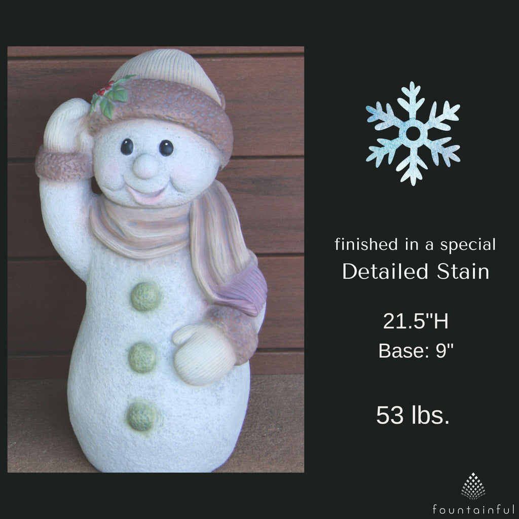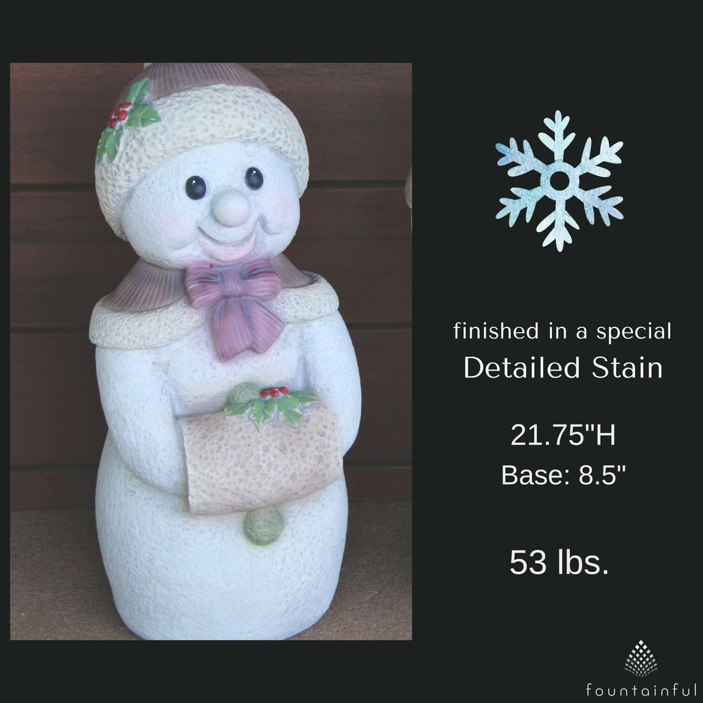 The Snow Girl and Snow Boy Statues by Massarelli's are masterfully sculpted to depict a pair of snow figures in holiday attire. Ivy leaves and berries adorn both of their hats.