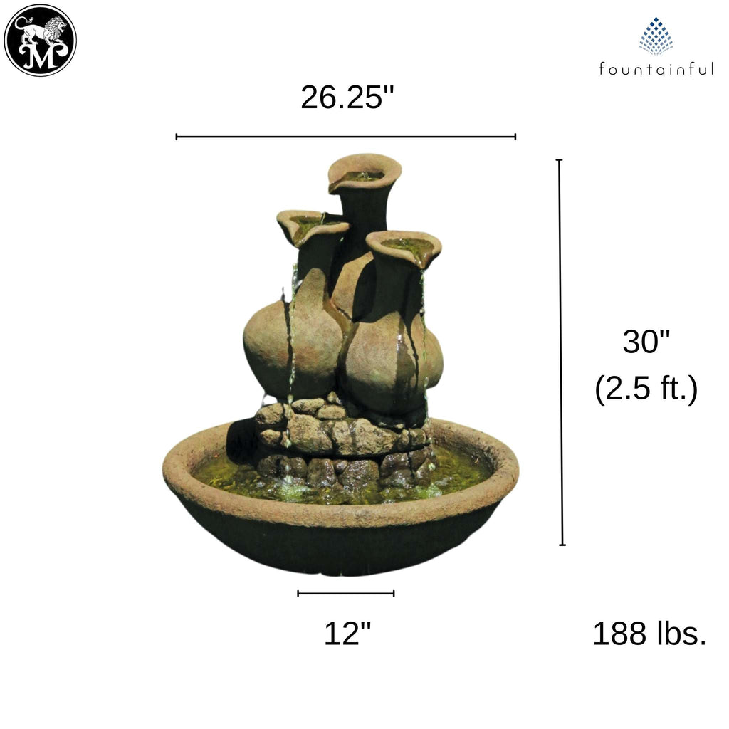 The Milos Jug Fountain from Massarelli's Fountains features three sculpted jugs reminiscent of ancient pottery you might discover on an archeological dig. Water pours into the pool from multiple location, creating beautiful focal points on this fountain that makes a perfect accent piece for a smaller garden space.