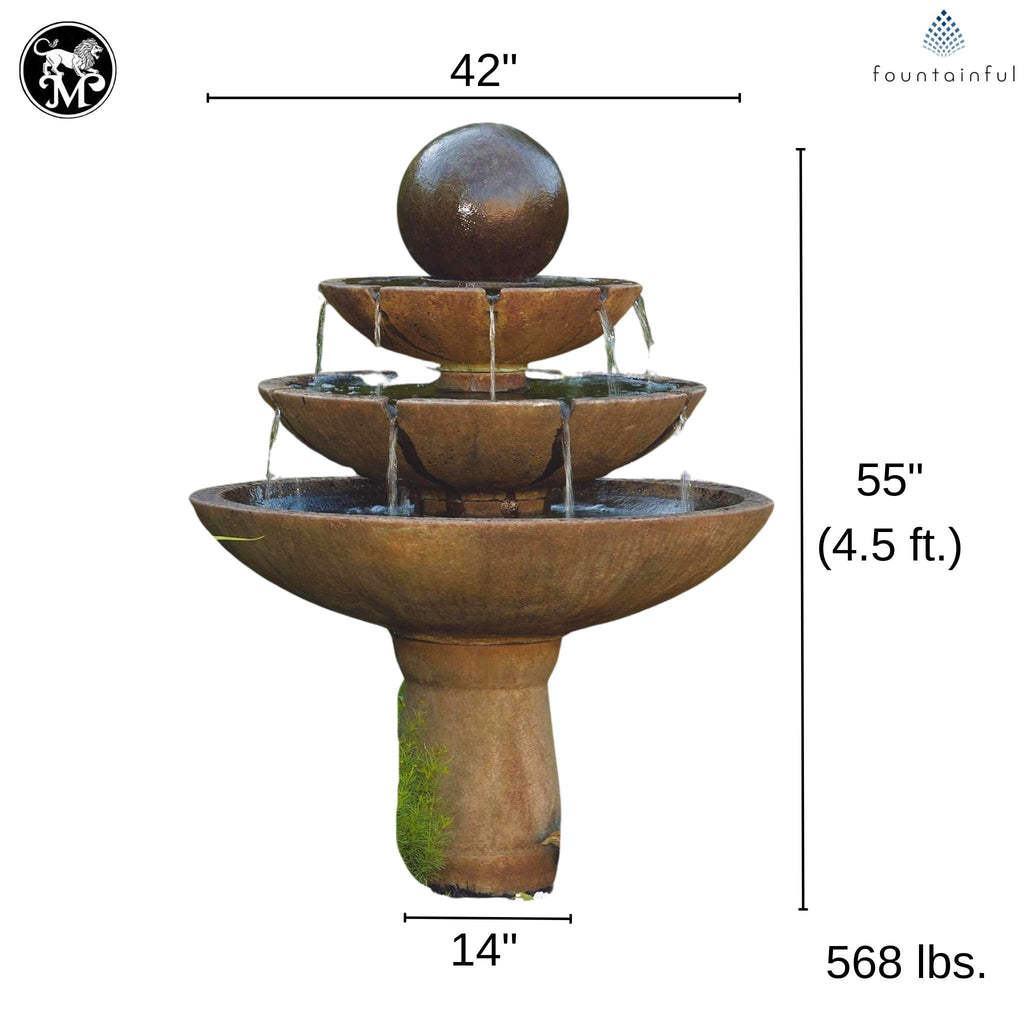 Tranquility Sphere 3-Tier Concrete Fountain - Massarellis #3696