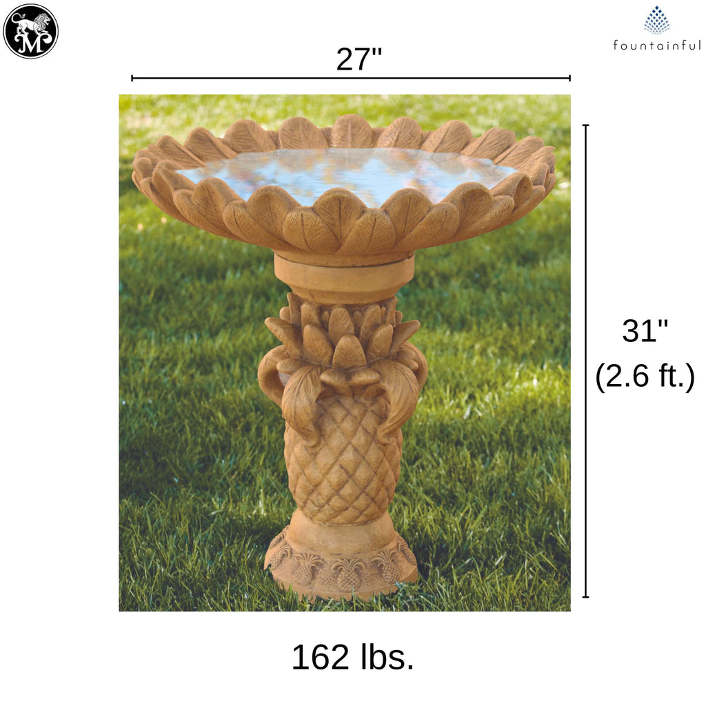 Pineapple Leaves Concrete Bird Bath - Massarellis #9270
