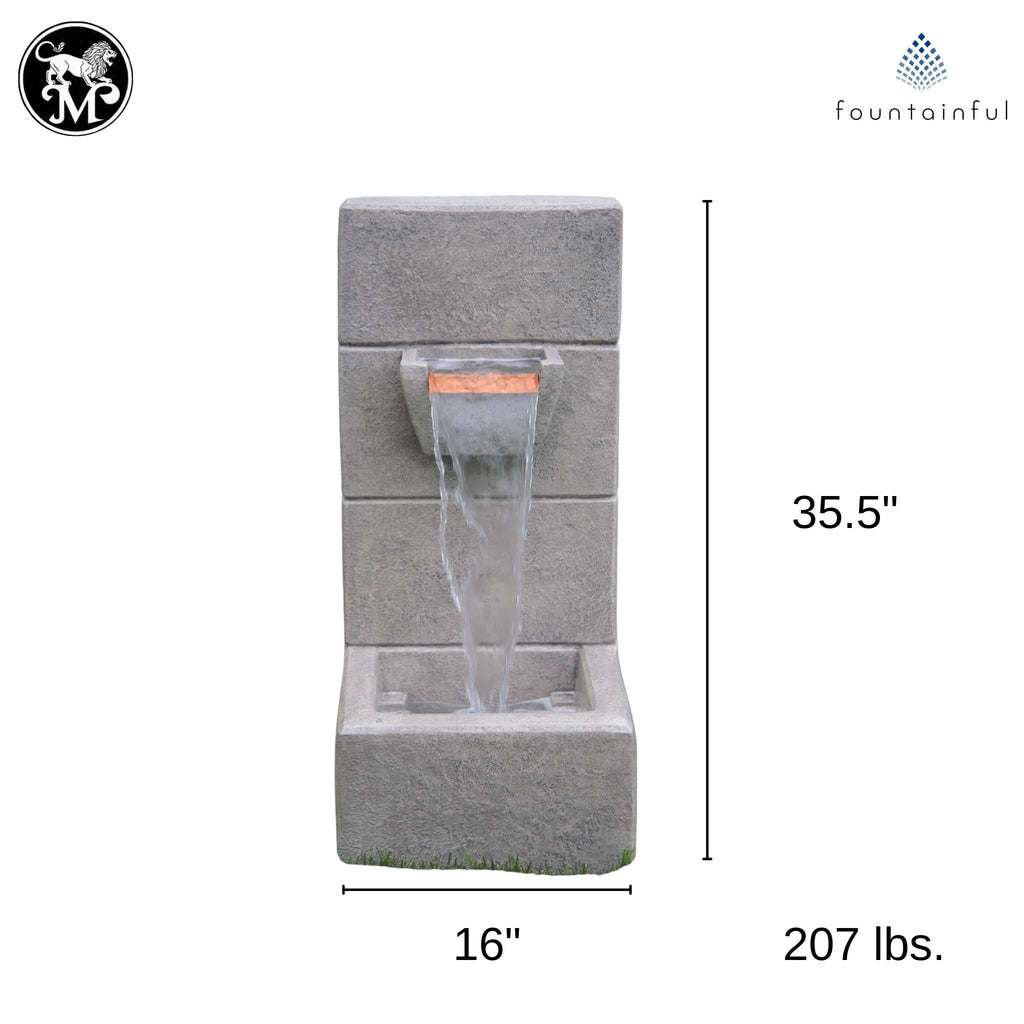 Enjoy the contemporary look and durability of this 207 pound cast stone concrete fountain. Includes pump & LED lighting.