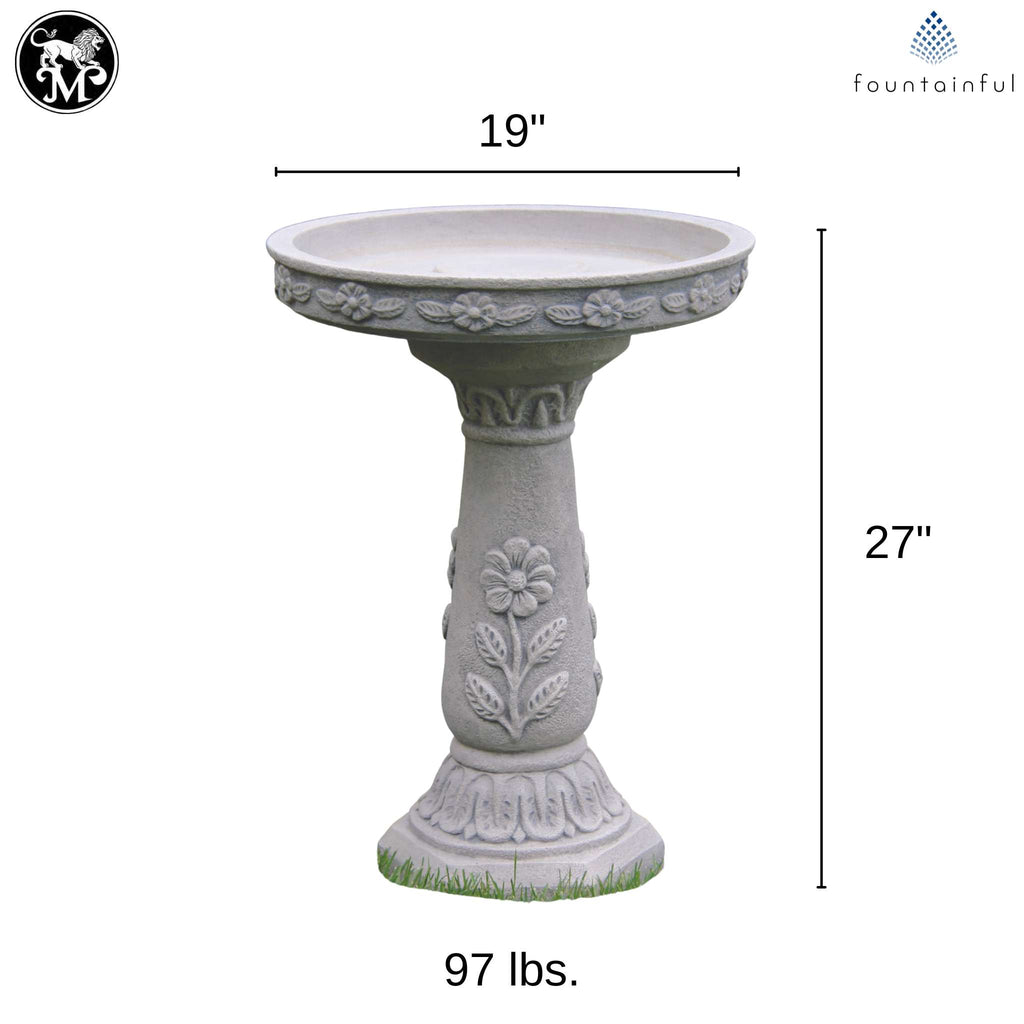 Daisy 2-Piece Concrete Bird Bath - Massarellis #9492