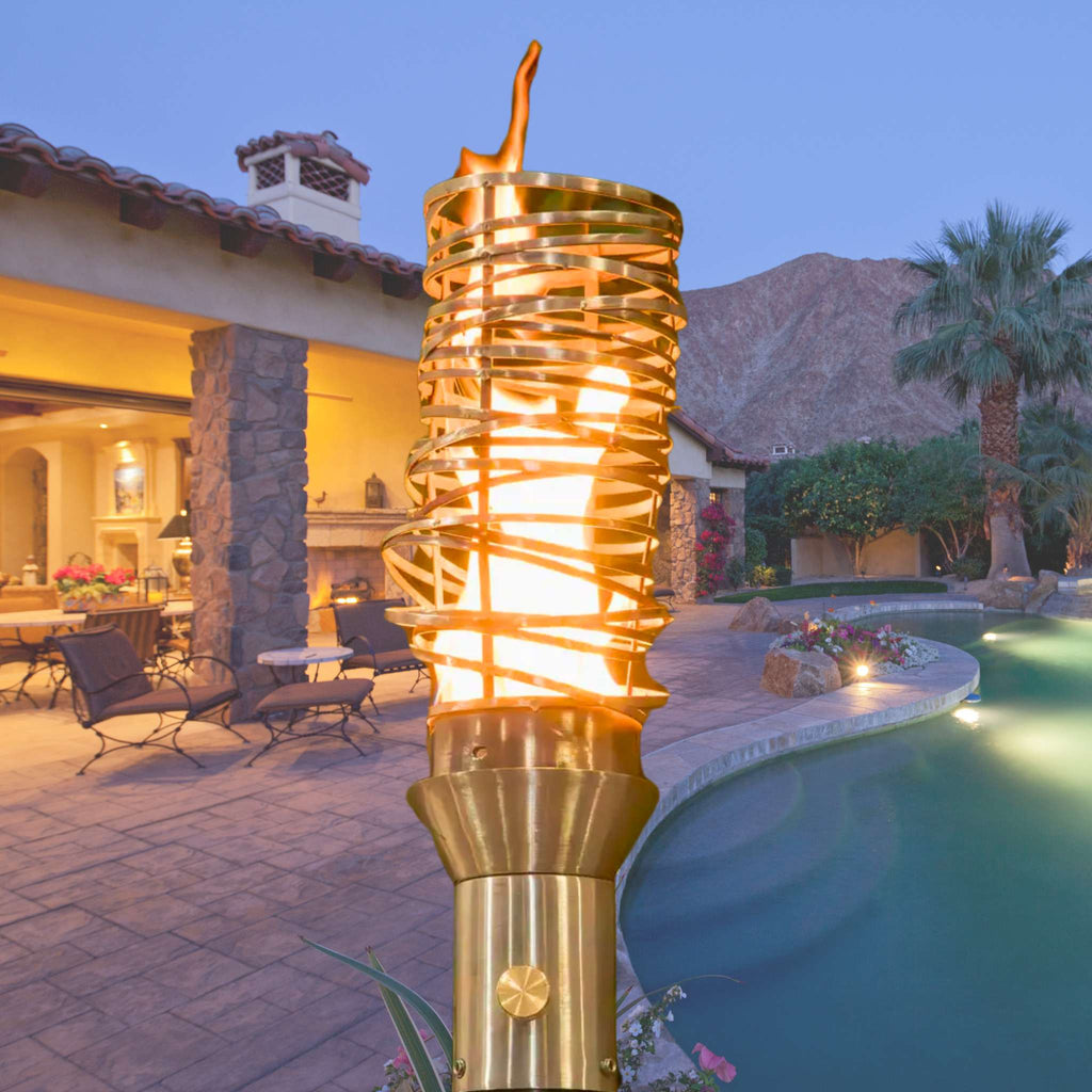 The Cyclone Fire Torch by Outdoor Plus is a striking fire feature designed to resemble a tornado in motion. Durable and resistant to corrosion thanks to its high-grade 304 stainless steel construction.