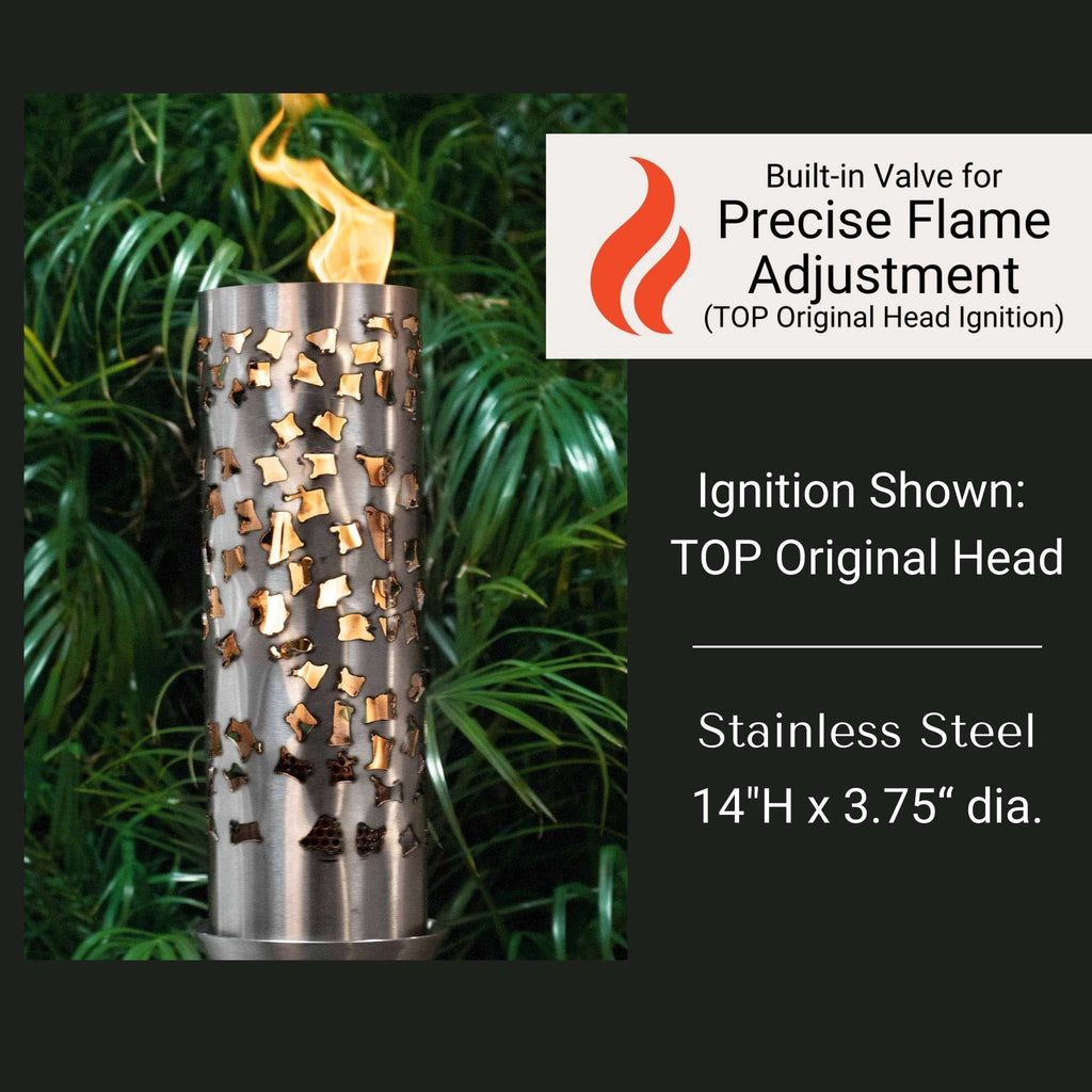 Ignition Options TOP Original Torch Head: Best for Torches installed with a hidden gas line. 3/8” Flared Gas Connection; Compatible with In-Ground Post, Column Mount, Propane Stand; Built-In Gas Valve for Flame adjustment.
