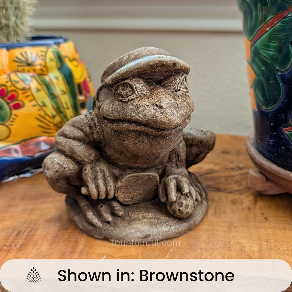 Each Pickleball Frog Statue is individually hand built of high-density cast stone concrete and rated for both indoor and outdoor use. Choose any color stain from the Campania palette to compliment your decorative theme.