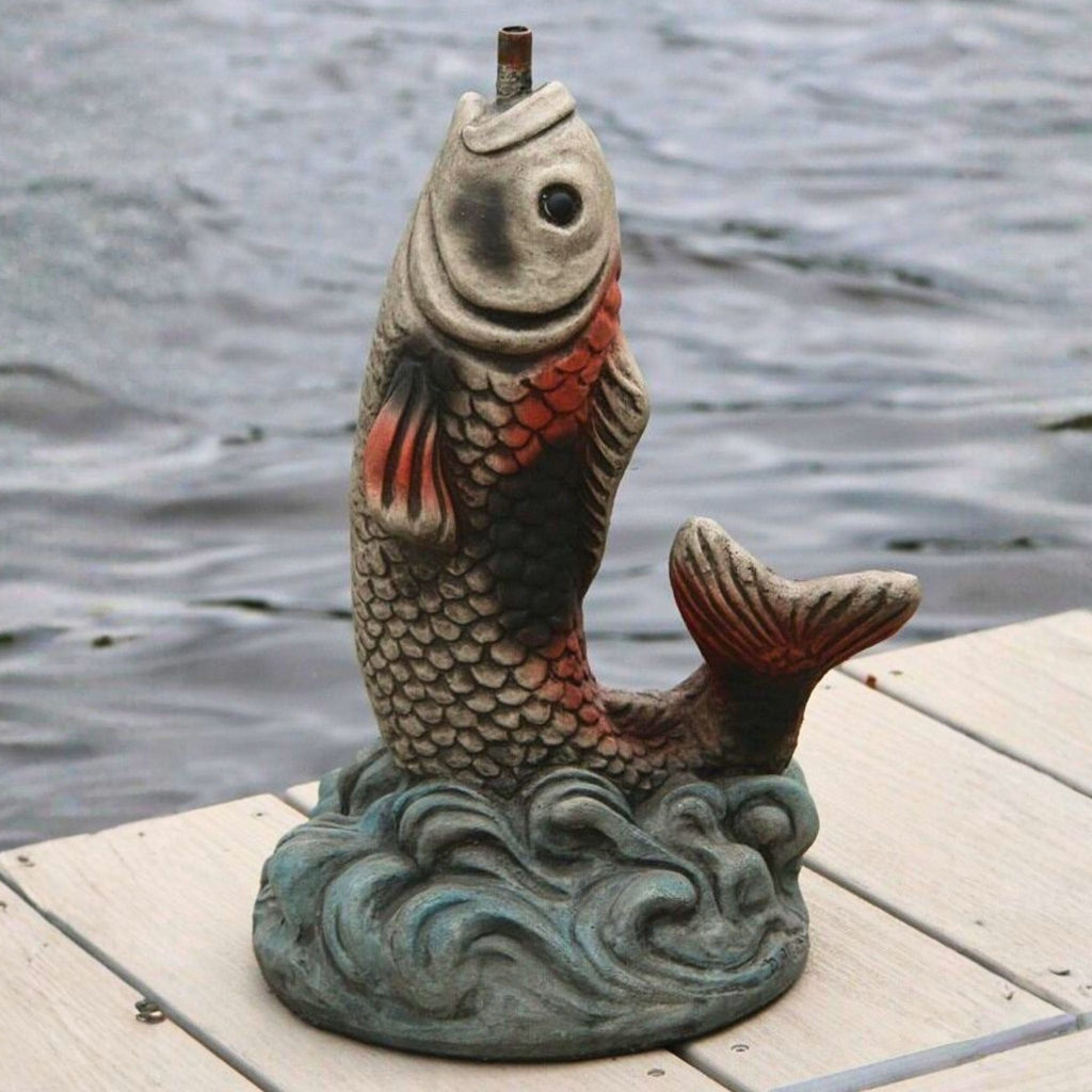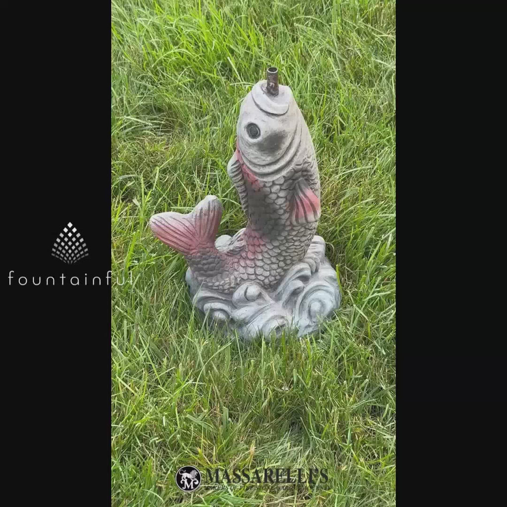 The Small Standing Carp Plumbed Statue by Massarelli's is a striking depiction of the fish, with intricate sculpted detail of its scales and the surrounding waves. Place statuary around the garden to display your personal style! Enjoy the classical charm and craftsmanship of this 15-pound cast stone concrete statue.